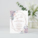 Elegante convite para chá de fraldas de menina, amigável em orçamento, impresso em papel leve com lindos buquês florais de flor silvestre, em tons de roxo, violeta, lilac, blush, pêssego, azul empoeirado e rosa empoeirado e verdes acentuados com um quadro geométrico de ouro rosa e cor de texto com o título IT S A GIRL em uma tipografia moderna e elegante escrita manual. Ideal para entregar aos convidados. AJUDA: para obter assistência com a modificação/personalização do design, transferindo o design para outro produto ou, se você quiser coordenar itens, entre em contato com o designer ANTES DE PEDIR por meio do Zazzle Chat ou makeitaboutyoustore@gmail.com.