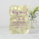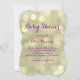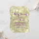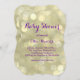 Escrita de fita elegante em um fundo de ouro cintilante decora este convite de chá de fraldas especial. Se forem necessários itens de coordenação adicionais, entre em contato conosco em prettyfancyinvites@gmail.com com sua solicitação.