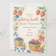 Celebre a chegada de alguém especial com este charmoso convite para chás de fraldas. Apresentando morangos pintados manualmente, mirtilos azuis e folhas em fundo pastel macio, este cartão editável é perfeito para chás de verão ou eventos temáticos de jardim. Personalize com nome, data, hora e endereço para um convite doce e exclusivo.