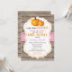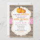 Chá de fraldas Rustic Pumpkin Fall Girl com fundo de madeira rústica.