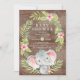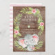 Chá de fraldas russo de safari da selva apresentando o mais doce elefante bebê em rosa para um chá de fraldas feminino com faixa de cor-de-água rosa para trás. Visite o nosso compro para ver este convite para uma ou mais meninas chás.