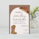 Sale-se por um dia especial com este Chá de fraldas Rustic Cowboy Invitation! Perfeito para uma comemoração de temas ocidentais, este convite apresenta um encantador design de vaqueiro com botas, chapéus e uma vibração ocidental selvagem — ideal para meninos ou partidos neutros em termos de gênero. Personalize-o com os detalhes do seu evento para se divertir!