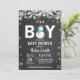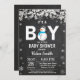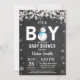 Convite de Chá de fraldas Rustic Winter Snowman Boy. Floco de neve branco. Bebê está frio fora do convite do Chá de fraldas. Convite para Chás de fraldas. Convite para Chá de fraldas de férias de inverno. Fundo Chalkboard. Preto & Branco. Para mais personalização, clique no botão "Personalizar" e use nossa ferramenta de design para modificar este modelo.