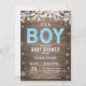 Convite de Chá de fraldas Rustic Winter Boy. Floco de neve branco. Bebê está frio fora do convite do Chá de fraldas. Convite para Chás de fraldas. Convite para Chá de fraldas de férias de inverno. Fundo Rustic Wood. Campo de Vintage Retro Barn Para mais personalização, clique no botão "Personalizar" e use nossa ferramenta de design para modificar este modelo.