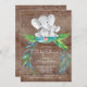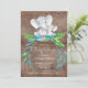 Chá de fraldas de safari da selva de aquarela, bonito, com uma adorável mãe elefante e bebê com folhas da selva colocadas sobre um fundo de madeira marrom rústica. Perfeito para um chá de fraldas de rapazes ou chá de fraldas neutro em termos de gênero.