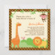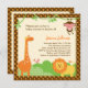 Convite para chás de fraldas bonitos e divertidos com um tema safari. Apresenta animais bonitos numa paleta de cores verde e castanho. designs modernos e coloridos com padrões e uma fronteira. Adicione seu próprio texto. Outros produtos correspondentes disponíveis nesta loja.