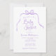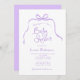 Convite para Chás de fraldas simples e roxo. Um arco giro, desenhado à mão, e uma fita emparelhada com fontes caprichosas e divertidas. Simples, mas brincalhão. Mostrado em roxo e branco, mas você pode escolher todas as novas cores para fundo, elementos design e texto. Personalize o modelo pronto com todas as informações de evento necessárias para personalizar sem esforço seus convites de chuveiro bebê. © Kimbellish, LLC