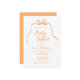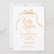 Convite para Chá de fraldas Simples Laranja. Um arco giro, desenhado à mão, e uma fita emparelhada com fontes caprichosas e divertidas. Simples, mas brincalhão. Mostrado em laranja, pêssego e branco, mas você pode escolher todas as novas cores para o fundo, elementos de design e texto. Personalize o modelo pronto com todas as informações de evento necessárias para personalizar sem esforço seus convites de chuveiro bebê. © Kimbellish, LLC