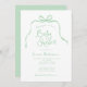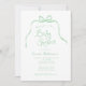 Convite para Chás de fraldas Simples Verde. Um arco giro, desenhado à mão, e uma fita emparelhada com fontes caprichosas e divertidas. Simples, mas brincalhão. Mostrado em verde-sábio e branco, mas você pode escolher todas as novas cores para fundo, elementos de design e texto. Personalize o modelo pronto com todas as informações de evento necessárias para personalizar sem esforço seus convites de chuveiro bebê. © Kimbellish, LLC