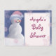 Bonito boneco de neve com chapéu rosa e flocos de neve rosa e azul com texto Chá de fraldas. Mude facilmente de frente e de trás para o seu tema perfeito de chá de fraldas de inverno. Veja milhares de cartões e selos de postagem de bebês, monogramas e convites.