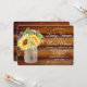 Sunflower Mason Jar Wood Rustic Chá de fraldas Convite
