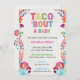 Este é um convite de festas Chá de fraldas divertido e colorido! Flores de aquarela brilhantes rodeiam todo o convite. Taco Bout A Baby Invitation é perfeito para qualquer época do ano e é neutro em gênero.