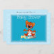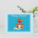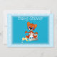 Convite bonito com um tigre sentado numa garrafa de bebê vazando. Um convite especial para o chá de fraldas daquele bebê especial. . Personalize com os detalhes do seu partido.