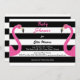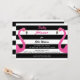 Flores cor-de-rosa divertidas sotaque este Chá de fraldas de tendência Convite em um fundo preto e branco listrado, fazer perfeito para um CHURRASCO de verão, luau, reunido pela piscina, ou chá do tema flamingo.