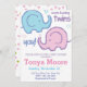 Convite para Chá de fraldas Twin Elephant (fraternal)