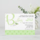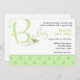 Chá de fraldas convite com a palavra "Baby" em texto verde claro e sotaque de borboleta fofo. Limite inferior das bolinhas verdes. O convite é adequado para a menina ou para o garoto. Os convites são fáceis de personalizar e são completos com envelopes e sua escolha de papel.