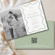 Celebre a chegada iminente do seu pequeno com este Convite Fotográfico de Chá de fraldas de Fita de Fita de Arco Verde Sage. Esta design estética de coquetes apresenta um charmoso arco verde de sábio e oferece personalização com o nome da nova mãe, informações de festas, uma foto e um código QR de registro. Personalize-o para torná-lo verdadeiramente único para a sua celebração especial. Entre na Ferramenta Design Zazzle para personalização adicional.