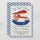 Este convite de chá de fraldas de avião clássico apresenta faixa e um plano vermelho. Design simples mas fofo para o chá de fraldas de um menino. Este convite para chás de fraldas de avião vintage está pronto para ser personalizado.