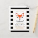Quando você não pode ter um chá de fraldas cara-a-cara, deixe essa cara de raposa doce ajudar você a reunir todos para uma festa de longa distância no Zoom, Facebook ou outro local online. Este cartão postal de convite virtual para chás de fraldas, com tema de floresta, apresenta um rosto de raposa bonito com pestanas longas. A palavra "Virtual" e o nome da futura mãe aparecem na caligrafia negra. Adicione a data e a hora, os detalhes da reunião on-line, o endereço físico para envio de presentes e as informações de registro no tipo de servidor dourado sans. Por trás do falso quadro retangular dourado está um fundo de listras brancas e pretas.