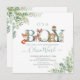 Bons Animais da Floresta Selvagem Greenery Chá de fraldas Convite para futuros pais. Urso, veado, raposa, coruja, coelho