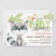 Guaxinim de floresta e convite para chá de fraldas de borboletas. Convidado neutro para chá de fraldas de menino ou menina.