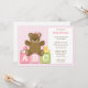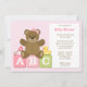 Este convite para Chás de fraldas bonito apresenta um ursinho de peluche com um arco rosa e um pato de borracha e um chocalho sentado sobre blocos ABC. Este convite de chá de fraldas moderno e divertido é perfeito para qualquer mãe ser.
