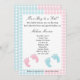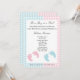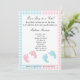 Este belo convite é perfeito para chutar a mulher tendo um menino e uma menina. O fundo é cor-de-rosa e azul. Mostra pegadas de bebê de desenho animado, um conjunto rosa e um azul. Você pode personalizar todo o texto.