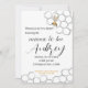 Convite para chá de fraldas "Mamãe-Bee". Esquema clássico de cor branca e preta com toques de amarelo de mel.