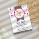 Celebrar a chegada de uma menina precioso com este chá de fraldas agradável e divertido! Com uma filhinha de desenho animado com pacificador e arco rosa, cercada por estrelas rosa enforcadas, esta design é perfeita para um chá de fraldas divertido e festivo. Ideal para: Meninas chás de fraldas Bonitas e temas coloridos de comemoração Pais buscando convites modernos e atraentes