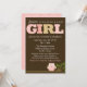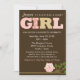 Letras de bloqueio multipadrão soletrando GIRL, com uma coruja fofa para este adorável convite para chás de fraldas