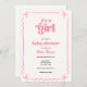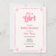 Este convite divertido para chás de fraldas com tema de arco apresenta uma borda cor-de-rosa esbranquiçada. Personalize com suas informações ou clique em "Clique para personalizar mais" para editar estilos de fonte, tamanho e cores.