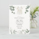 Chá de fraldas com um quadro de aquarela eucalipto e verde com um vestido de bebê pendurado numa linha de roupa. Personalize com suas informações para que a mãe esteja. Clique em "clicar para personalizar mais" para alterar o estilo, o tamanho ou a cor da fonte.