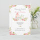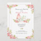 Um convite floral lindo para um chá de noiva com flores cor-de-rosa, bolo da ocasião e bule de chá.<br/>() O cartão é fácil de personalizar com sua redação, fonte, cor da fonte, opções de forma de papel e escolha de seis tipos de papel.<br/>() Não é exatamente o que você está procurando? Todos os nossos produtos podem ser personalizados para atender às suas necessidades sem custo adicional.<br/>() Basta entrar em contato conosco em askpixieprints@aol.com.<br/>() Produtos coordenados disponíveis: Basta perguntar!