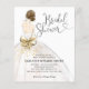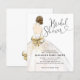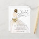 Convite para Chá de Noiva com Caligrafia em Script Elegante e Moderno Vestido de Noiva Branco e Dourado