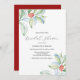 Procurando temas para um chá de noiva de inverno? Este convite de chá de noiva com tema de Natal em aquarela traz um clima aconchegante e elegante para a sua celebração. Com folhagens pintadas à mão e frutos vermelhos, é a escolha perfeita para um tema de chá de noiva de inverno rústico e refinado.