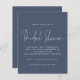 Chá de panela Azul Marinho Dusty do Script de Orçamento. Um alternativo de 4,5 pol x 5,6 pol com preço inferior. Disponível em um STOCK DE CARTÃO SEMI GLOSS 110 lb, que é a opção padrão (recomendada para convites, semelhante à espessura de um cartão postal) OU um STOCK DE PAPEL THINNER FINISH DE 80 lb FINISH (ideal para gabinetes). Design minimalista tipográfico com cabeçalho de ocasião em um roteiro informal de conjunto de na moda. Personalize facilmente o resto do texto para seus próprios detalhes. As cores do texto e do plano de fundo podem ser alteradas para qualquer uma de suas opções por meio da opção personalizar mais.