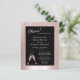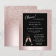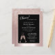 Em um fundo luxo de folha metálica cor-de-rosa esbranquiçada, nosso elegante Chá de panela de orçamento apresenta um design brilhante com óculos de champanhe borbulhando torcendo a noiva-a-ser. Em um quadro preto, você encontrará um texto de exemplo que pode ser facilmente revisado com seus próprios detalhes usando o modelo de personalização. A parte traseira do convite exibe o design de brilho ombre exclusivo sem texto.