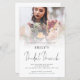 POR FAVOR, OBSERVE QUE HÁ UM convite por folha. Um tamanho maior de 5,5" x 8,5" a um preço orçamentário. OBSERVE QUE OS ENVELOPES OPCIONAIS SÃO UM POUCO MAIORES EM TAMANHO A 6,75" x 9" aprox. Orçamento Foto Sobreposta Chá de panela Brunch. Uma tipografia informal em preto para o título principal Bridal Brunch complementando o resto do texto que você pode facilmente personalizar. Recoloque a foto da amostra com seu favorito da noiva.