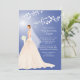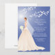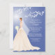 Comece o seu evento com a nossa noiva de morena de moda colocada num Chá de panela de fundo de cor azul. Apenas personalize nosso convite com suas informações de casamento e você está pronto para ir. Disponível em outras combinações de cores e cores de cabelo em nosso compro em www.celebrateitweddings.com. Veja nossas notas de agradecimento, adesivos e botões de noiva em nosso compro
