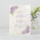 chá de panela de casamento de rosas roxos de vintage. Dê uma impressão duradoura com este belo design floral, com belos rosas roxos de flores de belo, no estilo antigo, e folhas verdes em fundo verde. Imprima sua família, parentes e amigos. Romântico e sofisticado, mas contemporâneo ao mesmo tempo. Uma abordagem moderna de uma imagem antiga. Personalize com seu texto. Excelente para um casamento do tema primavera/jardim de verão.