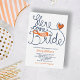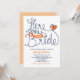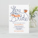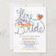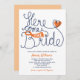 Personalize este Chá de panela fantástico e moderno com letras manuais. Aqui vem a Noiva. Projetado em uma combinação de cor branca azul-alaranjada fresca.
