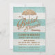 Um guarda-chuva de ouro e um texto de caligrafia brilhante com fundo aqua brilhante e negrito. Seus hóspedes e futura noiva amarão este bonito convite para noivas modernas. Verifique em minha loja se há mais versões. Fácil de personalizar com seu próprio texto. NOTE: Todos os produtos do Zazzle têm imagens impressas planas - não sequências reais ou brilho.