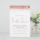 Chá de panela de Orçamento Glitter Dourado rosa. Um tamanho maior de 5,5" x 8,5" a um preço orçamentário, em uma elegante estoque LINEN de 110 lb - para uma sensação de luxo pelo valor do excelente, isso é perfeito para convites, menus, programas etc. Esse alternativo de 5,5 x 8,5 pol também está disponível em outras opções de papel. O estoque do cartão SEMI-GLOSS de 110 lb tem aproximadamente a mesma espessura do cartão postal, portanto também funciona bem para convites. O papel FELT de 100 lbs é colorido por buff, NÃO branco, então adiciona um toque rústico. O estoque de papel MATTE de 80 lb é branco brilhante, para impressão nítida, excelente para seus menus e programas, enquanto o papel SATIN de 80 lb é fino e leve, ideal para gabinetes. OBSERVE QUE OS ENVELOPES OPCIONAIS SÃO UM POUCO MAIORES EM TAMANHO A 6,75" x 9" aprox. Estilo Glam e glitz com uma borda falsa de brilho no topo em ambos os lados e cabeçalho de ocasião em um script informal definido. Personalize facilmente o resto do texto para seus próprios detalhes.