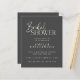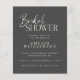Este chá de panela elegante apresenta um fundo preto em negrito com um texto branco contrastante numa combinação na moda de scripts e fontes serif. Impresso em uma opção de papel acessível, é perfeito para celebrações elegantes que não se comprometem no estilo. Ideal para eventos contemporâneos, reuniões de cidades ou temas monocromáticos.