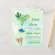 Um fundo verde de cor aquosa decorado com cacto de cor aquosa, um grande vidro verde e azul com coquetel Margerita, maracas coloridas Personalizam e o nome da noiva a ser e detalhes. 1 folha = 1 convite impresso de borda a borda.