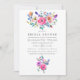 Rosas e convites de chá de panela florais sutis, cor-de-rosa-quente, com acentos de roxo, turquesa, azul e violeta.