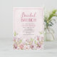 Adorável convite de Bridal Bridal, cor de rosa, com um fundo floral padronizado. © Mini Moi Impressões