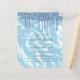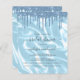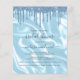 Um design chic moderno com uma seda azul pálida ou fundo de satin com uma borda superior de gotas de brilho azul. As palavras "chá de panela" e o nome da noiva a ser aparecem em um roteiro de caligrafia em minúsculas com traços decorativos no início e no fim, com o texto restante em fonte sans serif. O fundo azul da bacia e a borda de gotejamento com brilho são repetidos no sentido inverso. (Para guardar as hastes, substitua apenas as letras do nome da noiva, deixando os símbolos no lugar.)