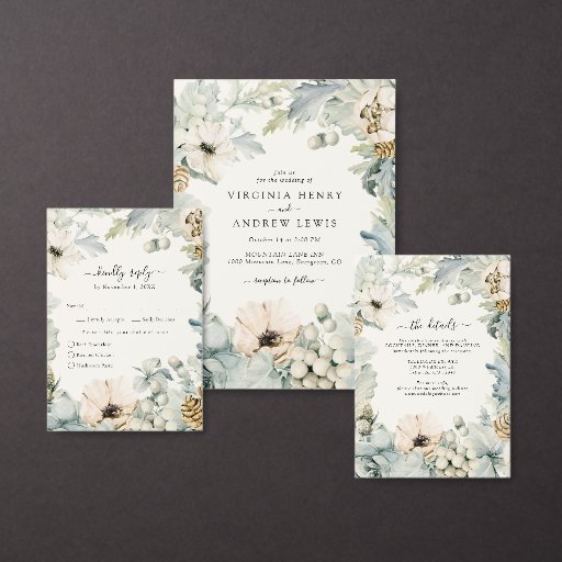 Winter Boho Dusty Blue Floral Wedding InvitationsCriado por Wendi R