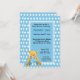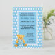 Baby Shower convida meninos com fundo de coração azul e um doce ursinho no canto. Personalize com os detalhes do seu partido.